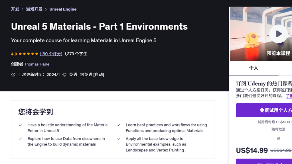 高级材质制作、Cinematic Camera 运用、Metahuman 角色工作流、Niagara 特效、布料模拟(Cloth)、Chaos 物理破坏、Sequencer 剪辑与 Movie Render Queue 高质量导出。